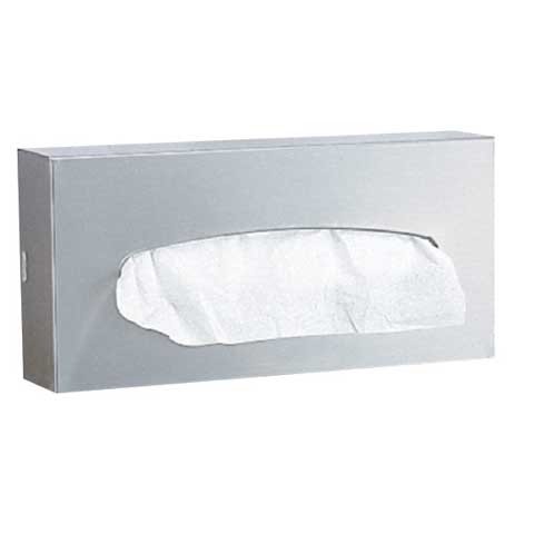 Dispenses one pack of 100 two-ply facial tissues.Cabinet type 304 stainless steel, satin finish. Equipped with concealed locking device; opens with key provided. Concealed wall plate is 22 gauge (0.8mm), type 304 stainless steel. Unit 10 1⁄4″ W, 5 3⁄16″ H, 2 1⁄4″ D (260 x 130 x 55mm).